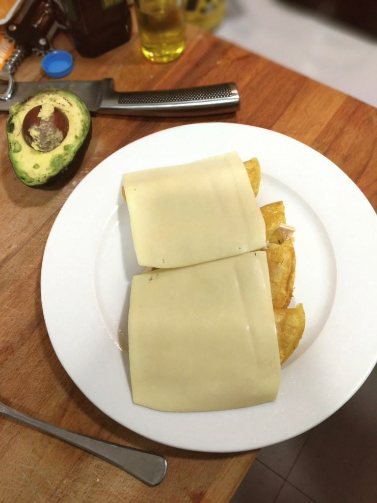 + cheese, avocado and creme fraiche (you can also add raw onion and coriander as a topping if desired)