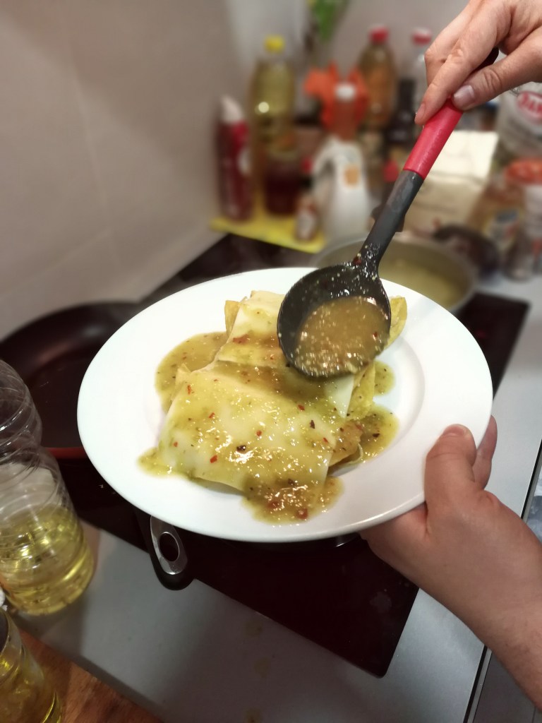 “Enchiladas”, they are so tasty! Years ago I didn’t know much about REAL Mexican food, I had a vague idea of what “enchiladas” were, mainly through Tex-Mex food in Finnish restaurants. Also, I didn’t know many types of tortillas existed. I thought that the only type of “Tortillas” that you could get were big wheat tortillas from the supermarket (the terrible Old El Paso brand is a good example) and I didn’t know that corn tortillas existed. Another shameful confession is that I thought tortillas and tacos were the same thing! 😀